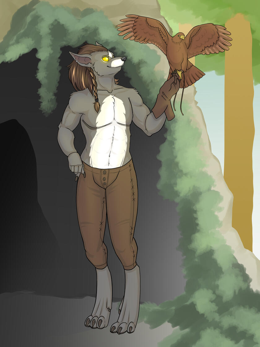 Full body illustration with cell or painterly shading and a detailed background or scene.$100